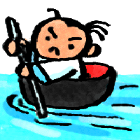ある日のことです。一寸法師は武士になるために京へ行きたいと言い、おわんを船に、箸をかいにし、針を剣の代わりに持って旅に出ました。川につくと、おわんに飛び乗り、川を下っていきました。波に揺られ、雨にうたれ、風に吹かれ、やっとのことで京に着きました。そこで大きな立派な家を見つけ、働かせてもらうことにしました。