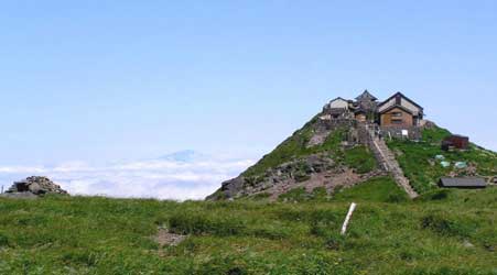 月山は593年に第32代・祟峻天皇の皇子、蜂子皇子によって開山されました。その頂上にある月山神社は、神仏混淆期にあっては月山権現と言い、祭神を天照大神の弟神の月読命、その本地を阿弥陀如来とした。神仏分離後は月山神社となるが、「御室」には、今も阿弥陀如来の石像が安置されている